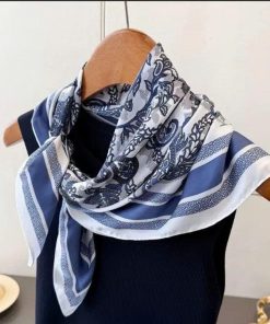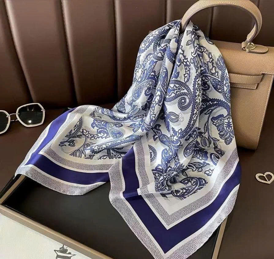 Khăn Lụa Vintage Hoa Văn Xanh Navy